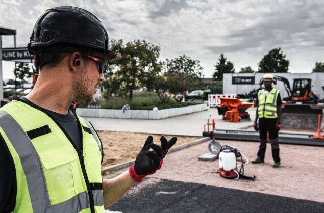 Jobsite Awareness biedt controleerbaar situationeel bewustzijn, terwijl de intensiteit van harde geluiden van buitenaf wordt verminderd.